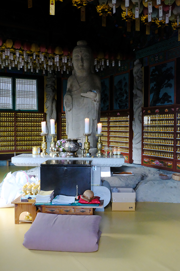 약사보전 속의 불굴사 석조입불상의 모습은 팔공산 갓바위 비슷한 분위기가 나지만 갓 대신 족두리를 하고 있어서 팔공산 관봉 갓바위가 산꼭대기 양의 기운이 가득한 곳에 있다면 이곳의 석조입불상은 족두리의 여성의 모습이고 이곳은 계곡 옆에 위치하고 있는데 이를 증명이라고 하듯이 불굴사와 팔공산 관봉석조여래좌상의 선본사 사이에 있는 동네이름이 음양동(陰陽洞)이니 우연일까요?