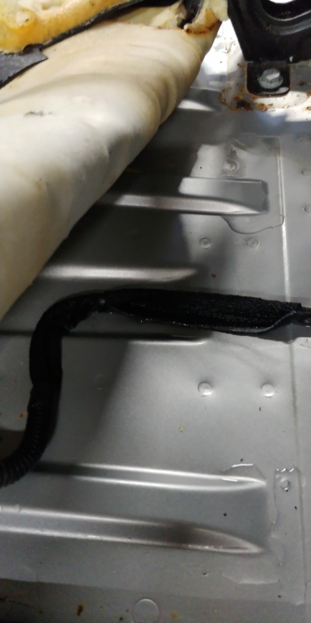 결국 오늘 의자 탈거하고 시트를 들어보니 물이 흥건합니다.바닥일부는 녹이 슬고 있었네요.에어콘 호스가 빠져 에어컨 물의 일부가 실내로 유입되었습니다.바닥재 안쪽이 폭신하게 솜처럼 물을 빨아들이는 스폰지 재질이라서 뜯어보기 전에는 물이 새는지 알수가 없습니다.바닥재는 말려서 다시 쓸수도 없어보였습니다.