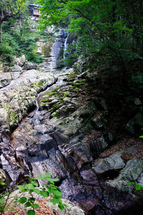 길옆 바위에 앉아서 폭포소리 들으며 한참을 대웅전 우측으로 내리는 금강폭포의 물줄기를 바라봅니다.아래의 금강소는 카메라 앵글의 한계로 담아내질 못합니다.